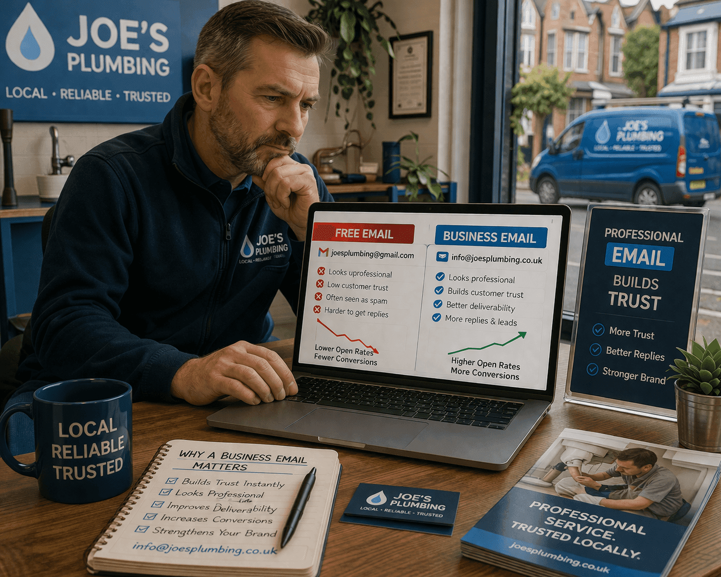 If you run a local business or are a tradesman, you might think creating a professional online brand with a business domain name, professional email, or website isn’t a necessity.